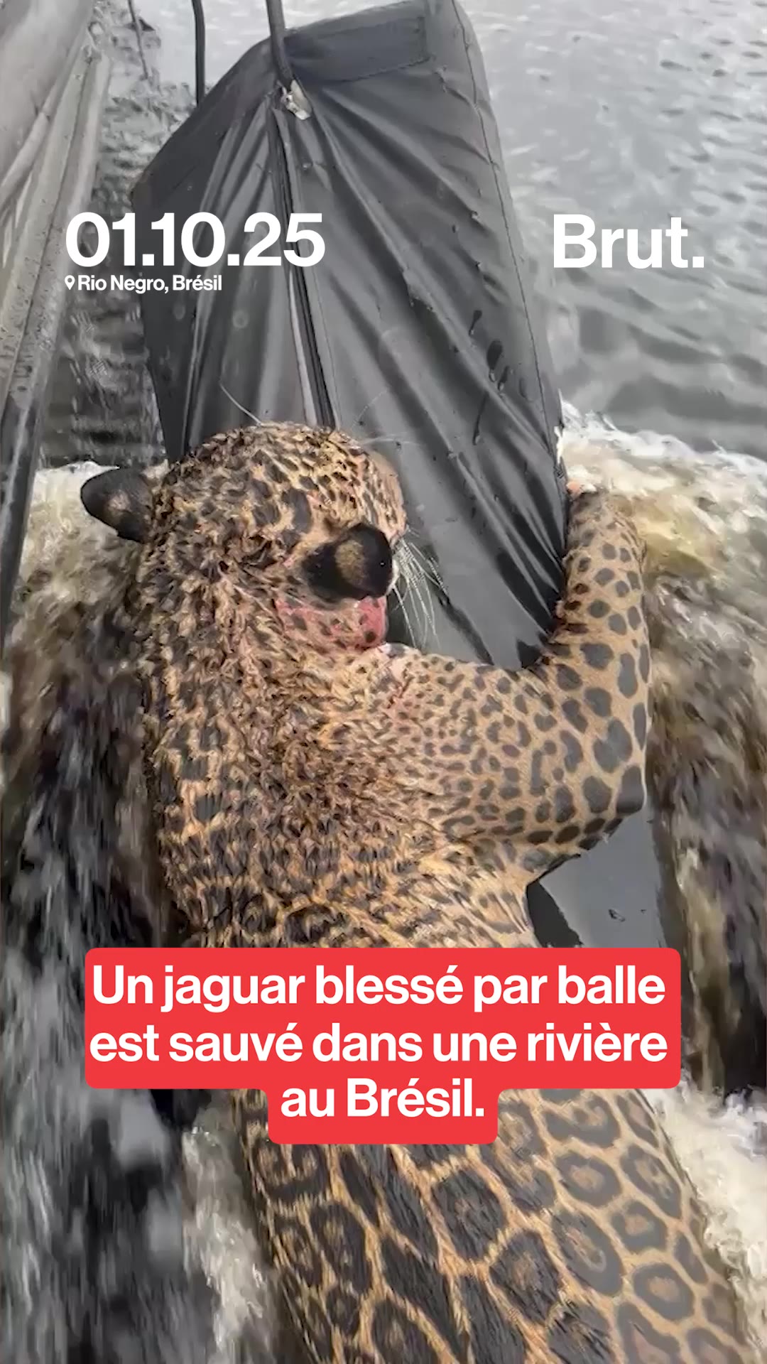 Un jaguar blessé par balles secouru sur un fleuve au Brésil.