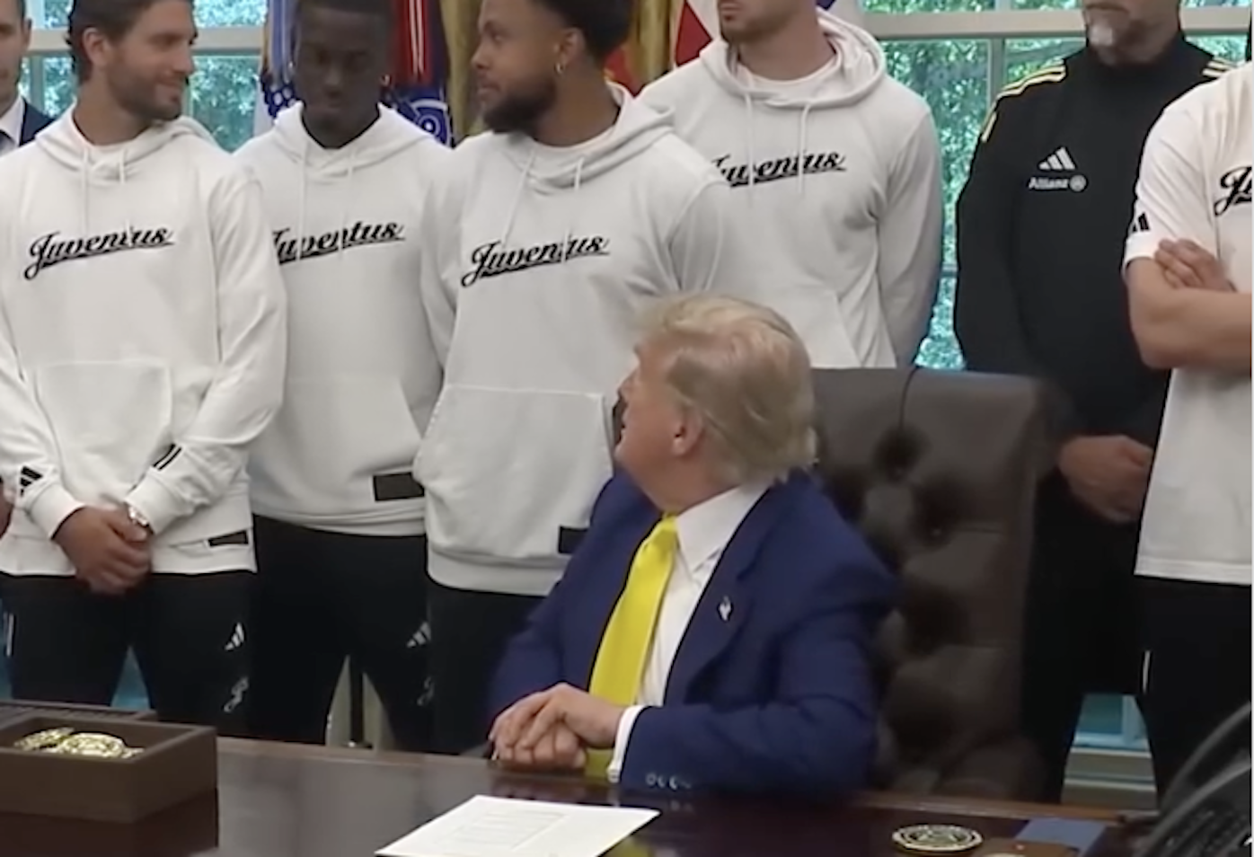 Pour le contexte, plusieurs joueurs et dirigeants de la Juve ont été reçus à la Maison Blanche ce mercredi 18 juin dans l’après-midi, juste avant un match opposant le club italien au club émirati de Al-Aïn, dans le cadre de la Coupe du monde des clubs, qui se déroule aux États-Unis. Avec les joueurs était également présent le président de la FIFA, Gianni Infantino.