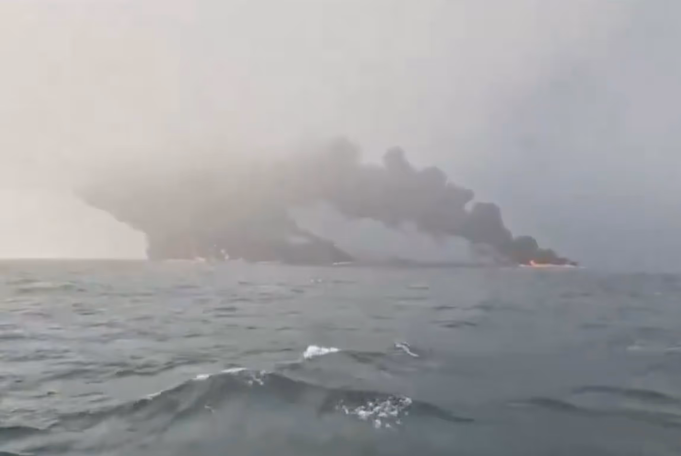 Le choc a engendré de gigantesques incendies à bord des deux bateaux. Ils étaient en grande partie éteints jeudi soir même si de "petits foyers" étaient toujours signalés sur le pont du Solong, selon les garde-côtes.