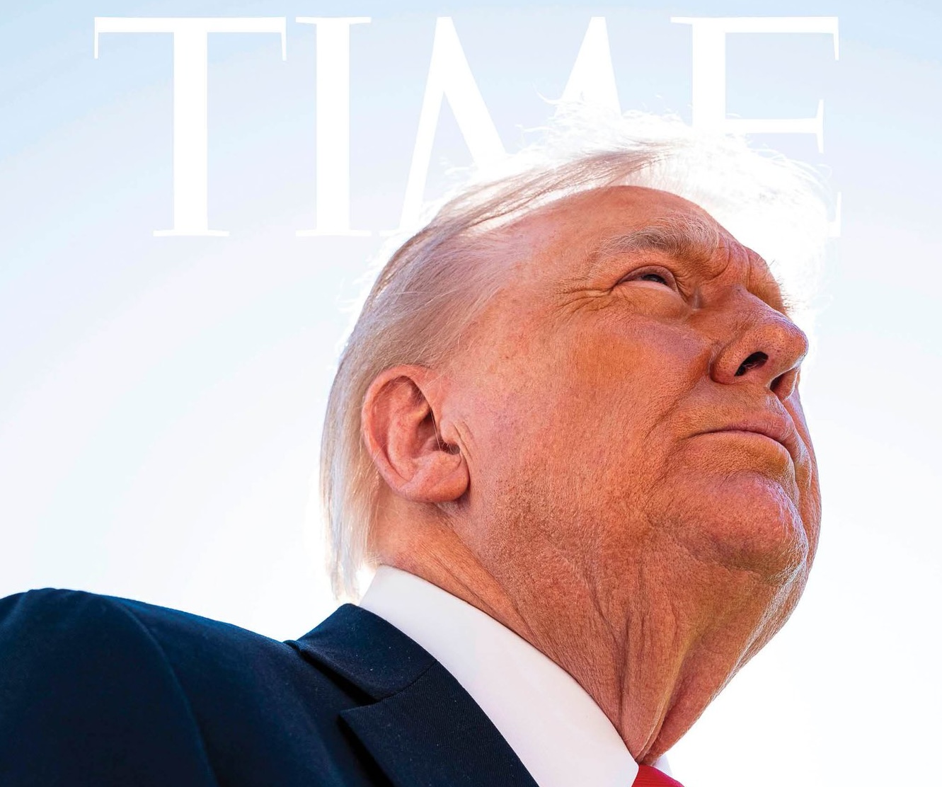 Le président américain fait la une du célèbre magazine américain avec une photo en gros plan et en contre-plongée, avec une discrète auréole blanche au-dessus de sa tête.