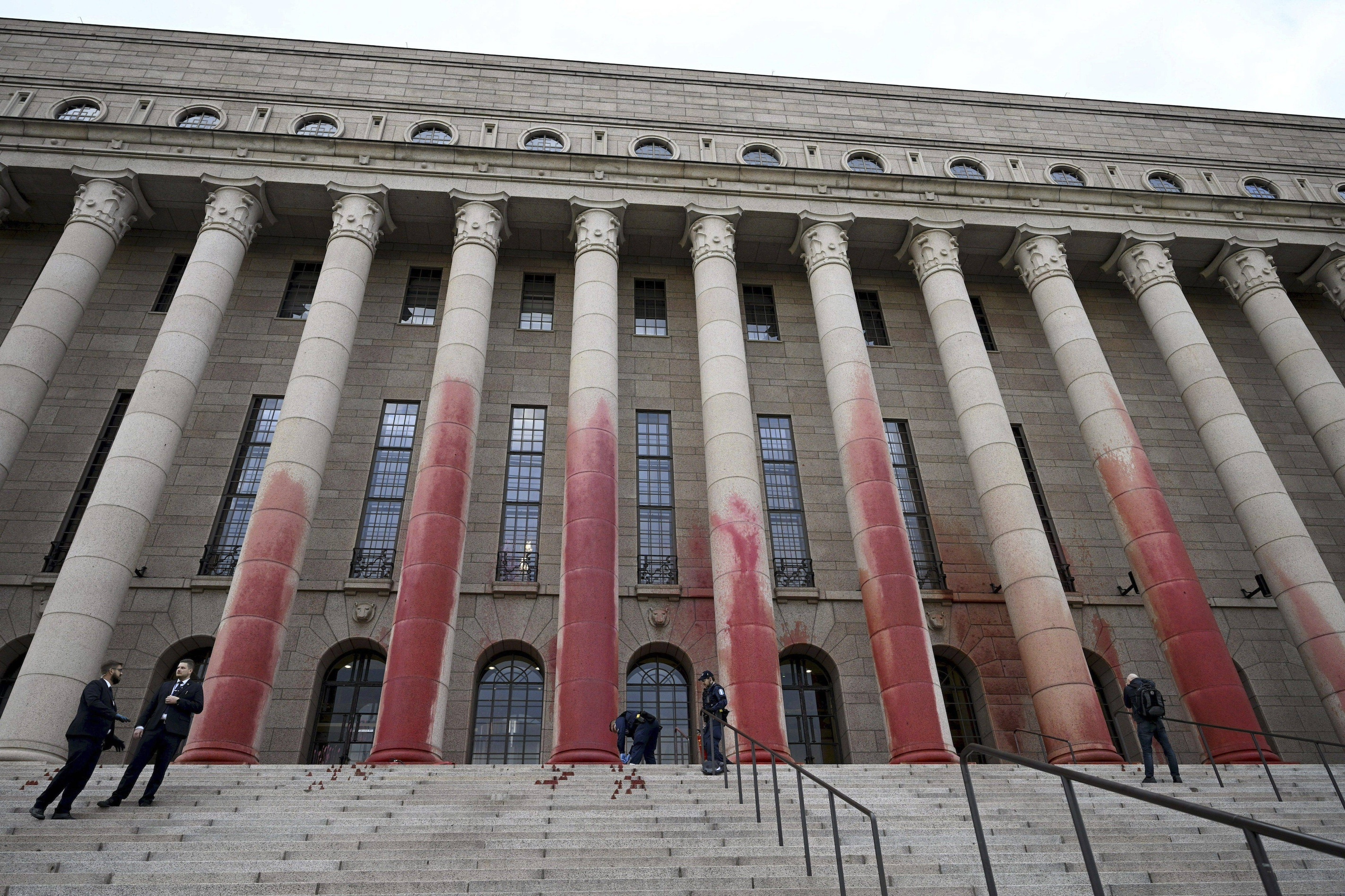 Des écologistes finlandais aspergent de peinture rouge le Parlement